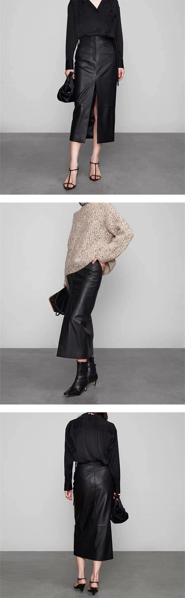 ▶ 本革のロングタイトスカート フロントスリット フロントファスナー