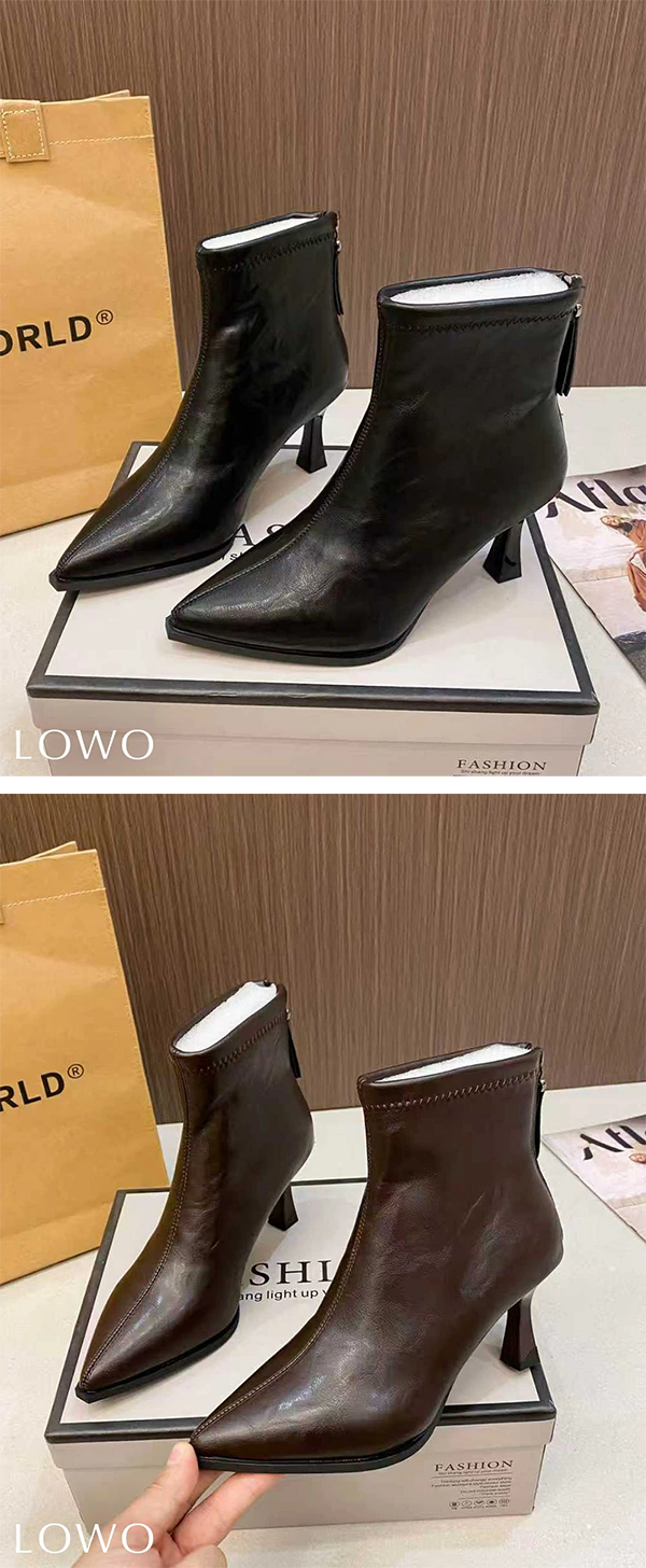 ◎レディース ショートブーツ ポインテッドトゥ 7.5cmヒール