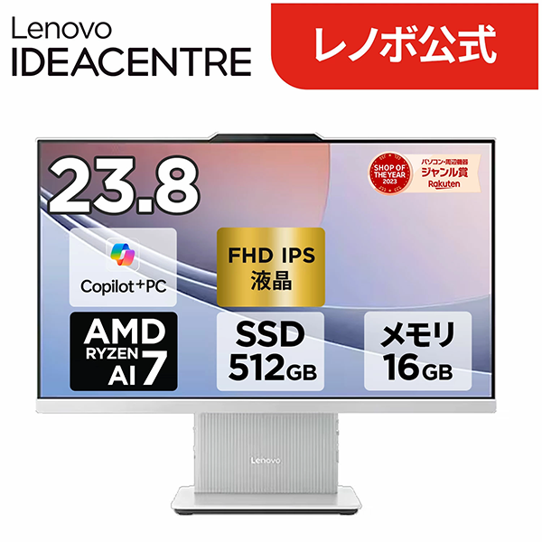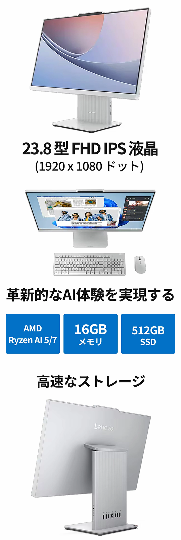 Toggle【商品の説明】新品 デスクトップパソコン PC 一体型 レノボ Lenovo IdeaCentre AIO 24AKP10 Windows11 CPU AMD Ryzen AI 5 330/AI 7 350 メモリ 16GB SSD 512GB 無線LAN Wi-Fi6 モニター 23.8型 MS Office H&B 2024