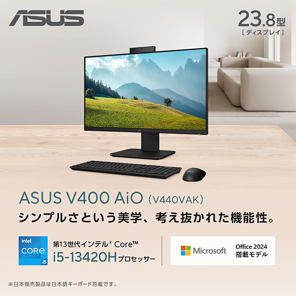 ■注目のおすすめの一台! 新品 ASUS 一体型 デスクトップPC V400 AiO V440VAK Core i5 13420H メモリ 16GB SSD 512GB MS Office 2024 23.8型 Win1