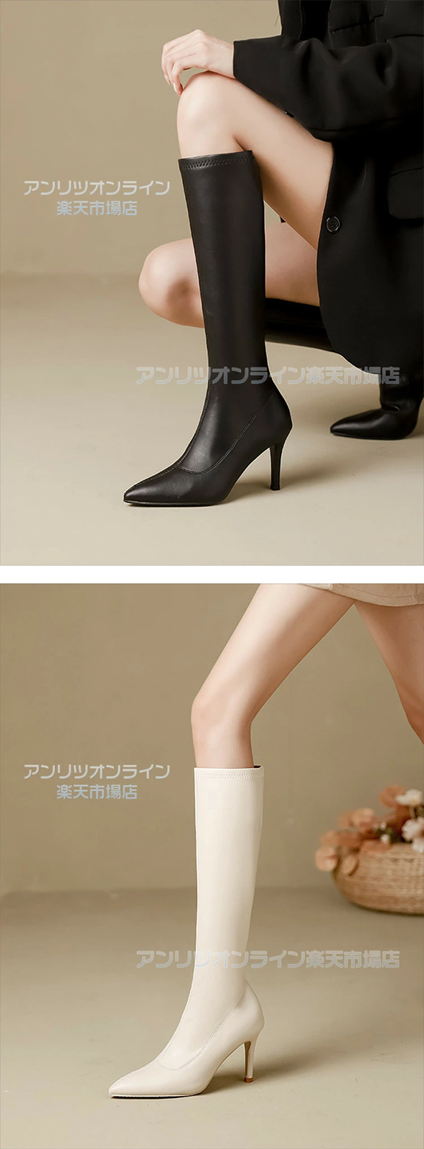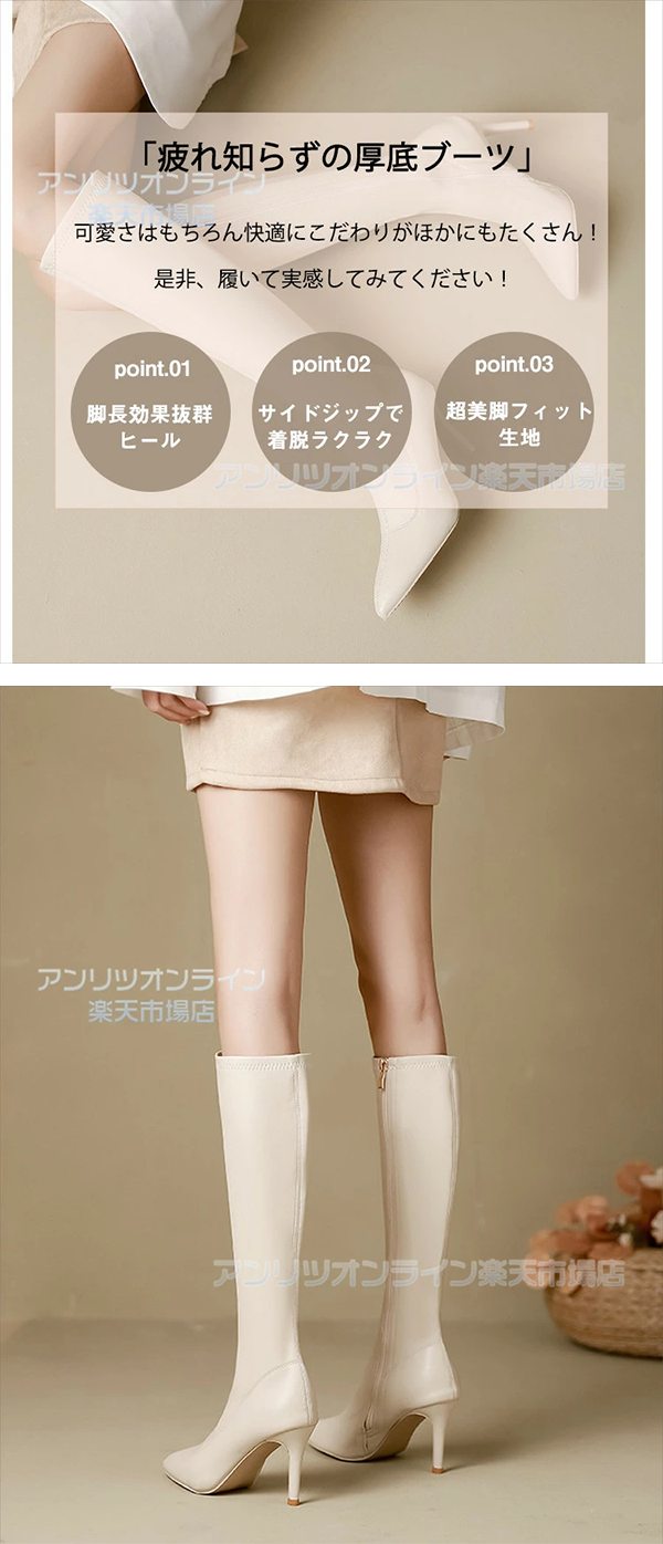 ▶ 楽天市場のサイト: レディース ロング ブーツ ポインテッドトゥ ピンヒール6/8cm アンリツ