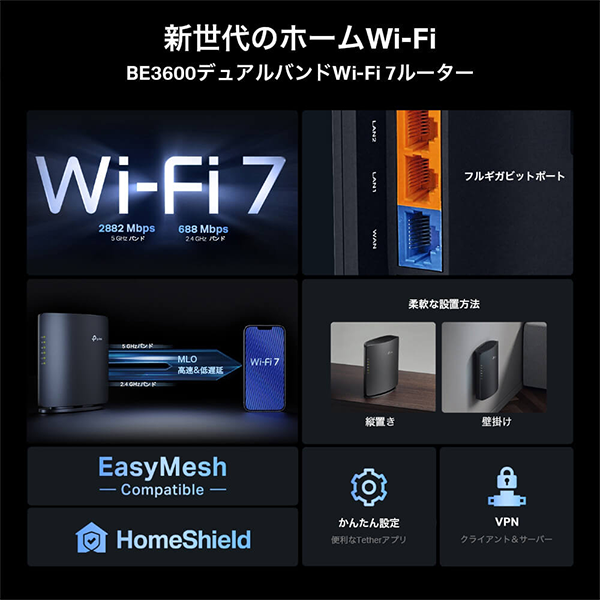 ▶ Wi-Fi 7に対応し、EasyMesh機能を搭載した無線LANルーター