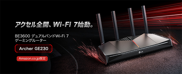 ▶ Amazonのサイト: TP-Link WiFiルーター WiFi 7 ゲーミングルーター デュアルバンド(2882+688Mbps) 2.5Gbps WAN/LANポート搭載 メーカー保証3年 Archer GE230 【Amazon.co.jp限定】