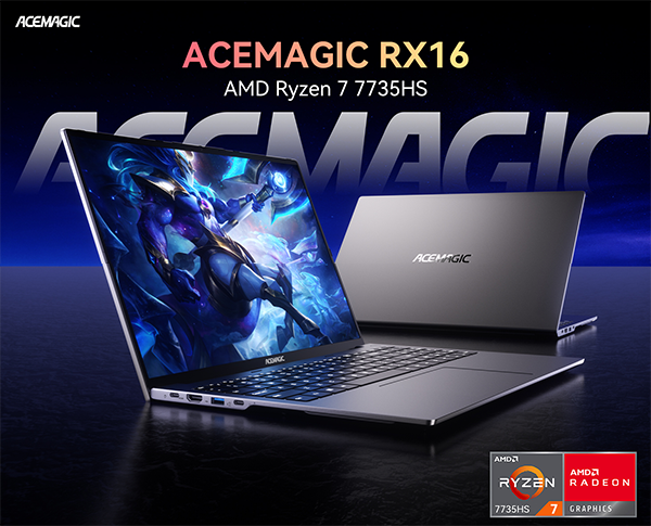 - 最新 ACEMAGIC ryzen ノートパソコンはZen3+アーキテクチャ、6nmプロセスを採用した8コア/16スレッドの高性能プロセッサー「AMD Ryzen 7 7735HS」(ベース3.2GHz、ターボ最大4.75GHz)を搭載します。