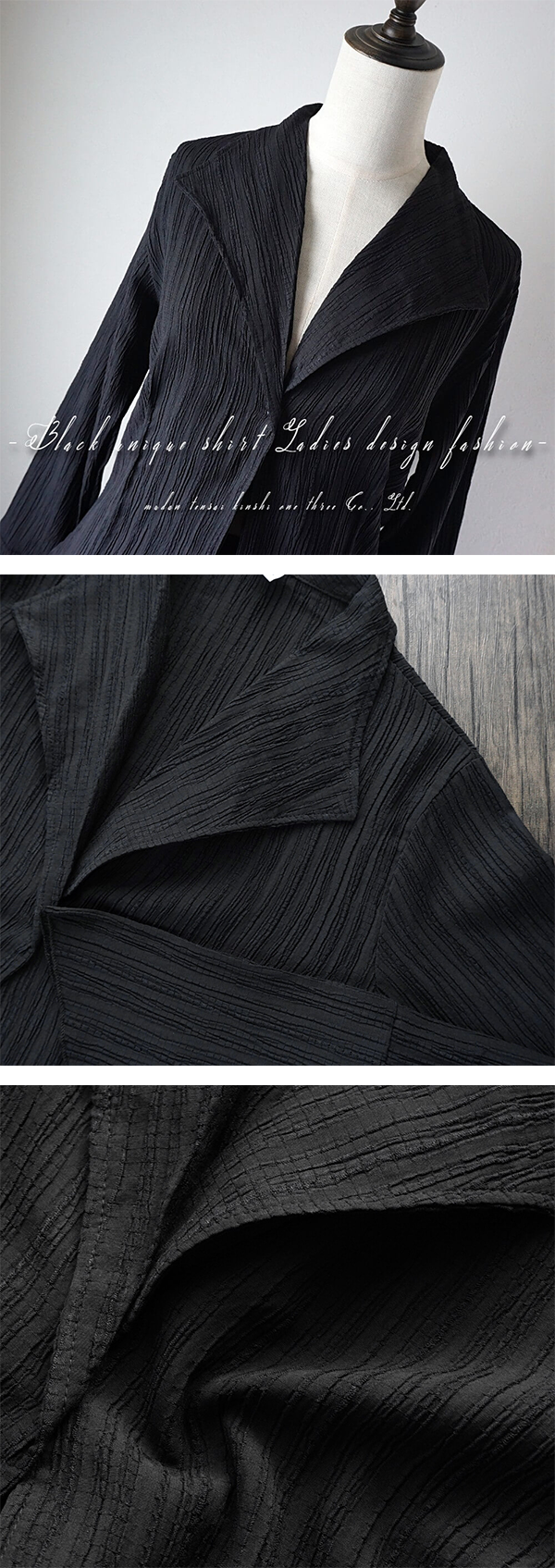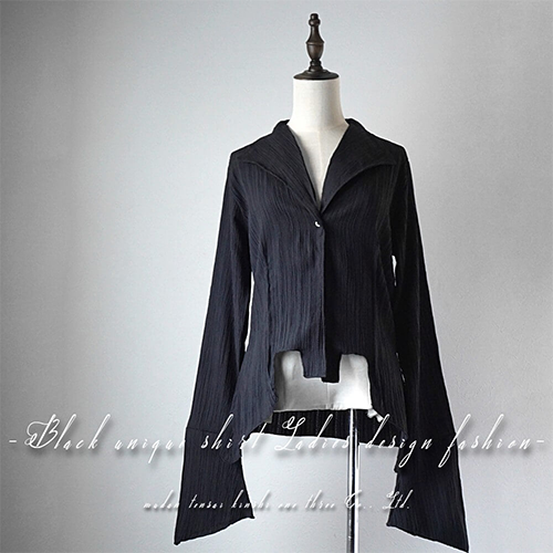 ▶ ユニークなデザインのきれいめブラックブラウスシャツ