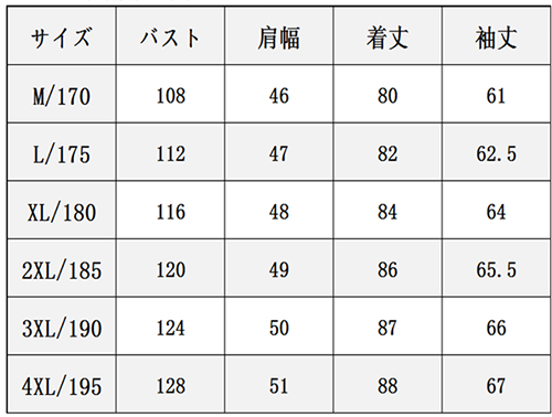 【サイズ】 ・M / L / XL / 2XL / 3XL / 4XL