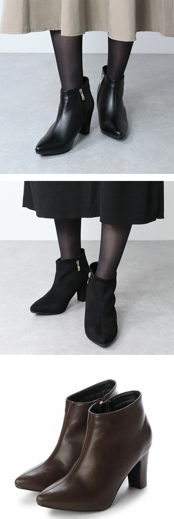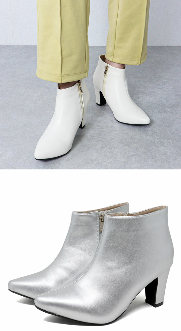 ◎レディース レザー ショートブーツ ポインテッドトゥ 7.5cmヒール