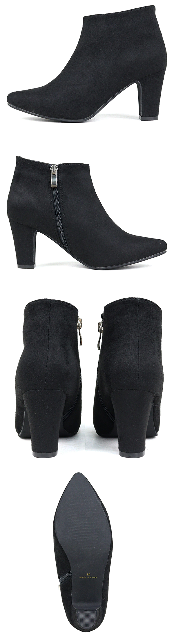 ブーティー レディース 痛くない 2E 歩きやすい チャンキーヒール サイドジップ スエード レザー 7.5cmヒール No.9014 22.5-24.5cm 黒 ブラック リバティードール 【一部SALE】 |