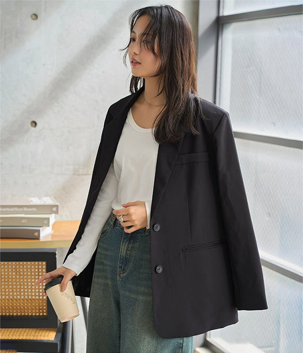 ◎レディース オーバーサイズ シングル ジャケット 2つ釦 神戸レタス