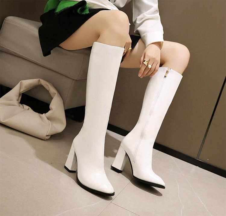 ▶ 楽天市場のサイト: レディース フェークレザー ロング ブーツ ポインテッドトゥ 太ヒール9cm Livio