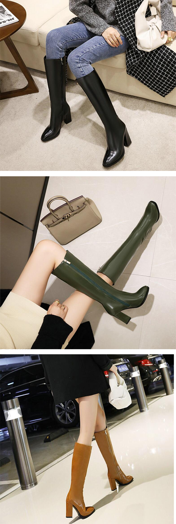 ◎レディース ロングブーツ ポインテッドトゥ 太ヒール9cm Livio