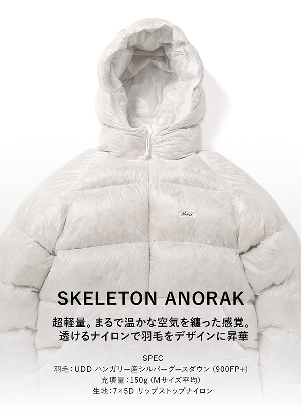 【返品交換送料無料】NANGA WHITE LABEL(ナンガ ホワイトレーベル)スケルトンアノラック / NANGA ナンガ ダウン ダウンジャケット ダウンウェア 透湿 撥水 防風 900FP グースダウン ハンガリー産 |