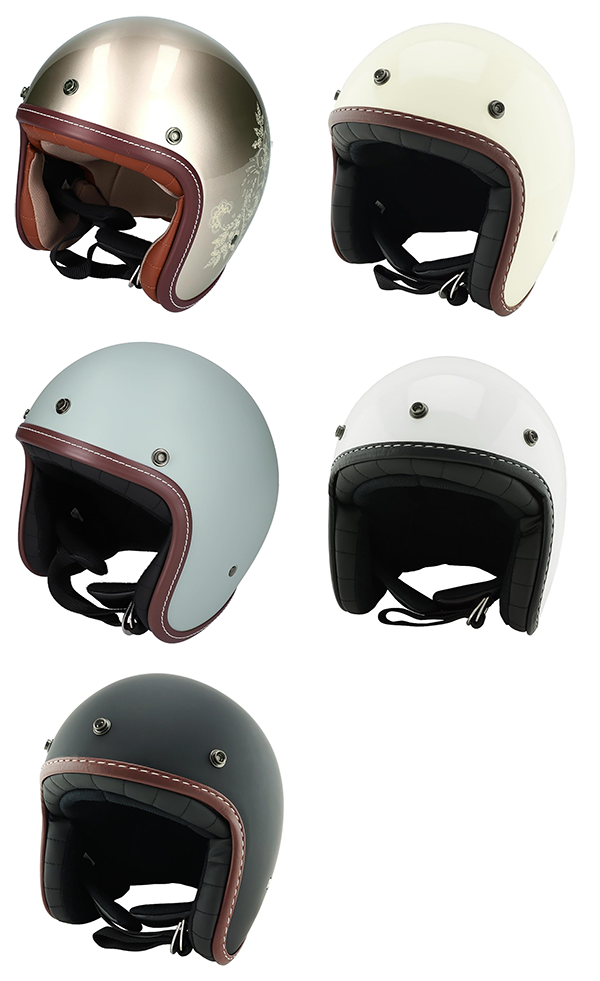 - SG規格およびPSC規格に適合し、全排気量に対応したレトロデザインのスモールジェットヘルメットです。
