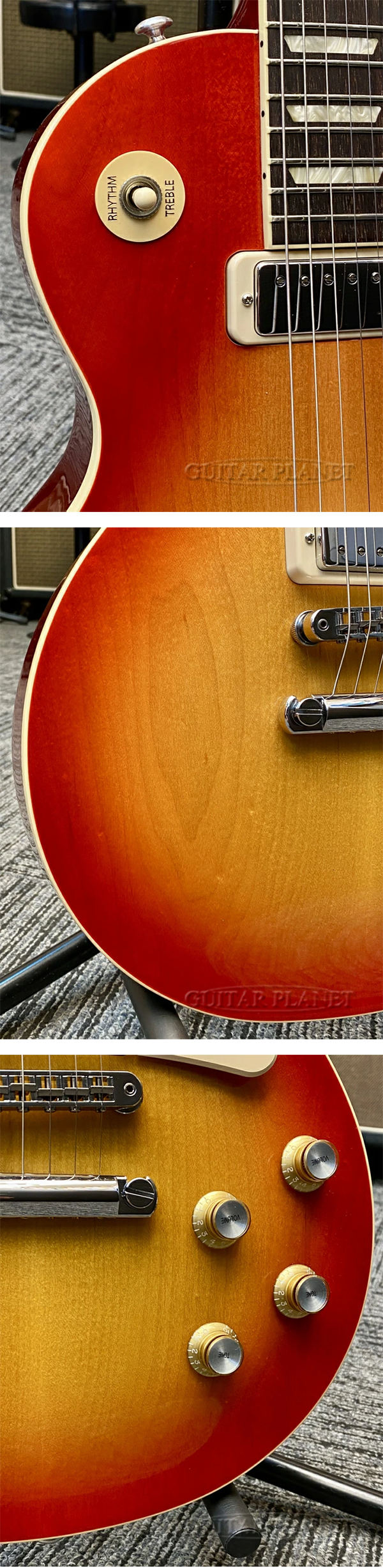 - プレーン・メイプルのボディトップと鮮やかな発色のチェリーサンバースト・フィニッシュも、’70年代スタイルをしっかりと継承しています。