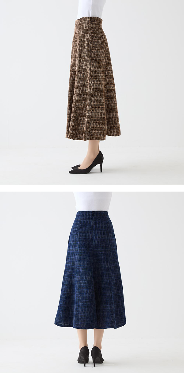 Toggle【商品の説明】レディース ツイード フレアスカート ロング丈 85-87cm丈 バックファスナー TZW653 グンゼ