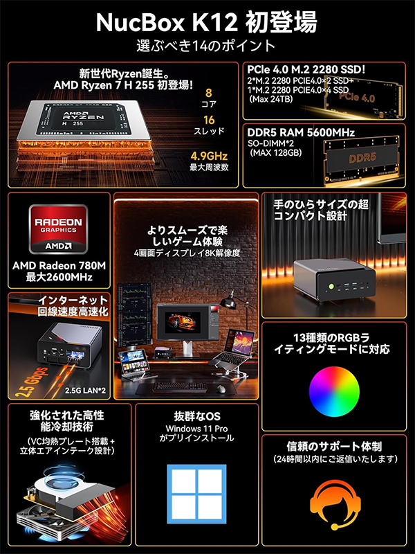 ■注目のおすすめの一台! 新品 ミニPC GMKtec K12 AMD Ryzen7 H 255 RAM 32GB SSD 1TB OCulink 4画面8K出力 2.5Gbps LANポート 無線LAN Wi-Fi 6E