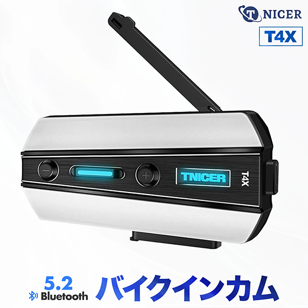 - 「TNICER T4X」は、最新のBluetooth 5.2を搭載し、最大8人までの同時通話に対応したコストパフォーマンスの高いバイク用インカムです。