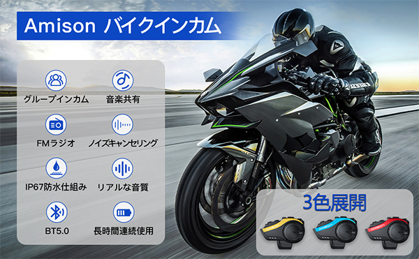 ■注目のおすすめの一台! 新品 Amison バイク インカム 最大10人同時通話 最大通話距離2000m 1~2台