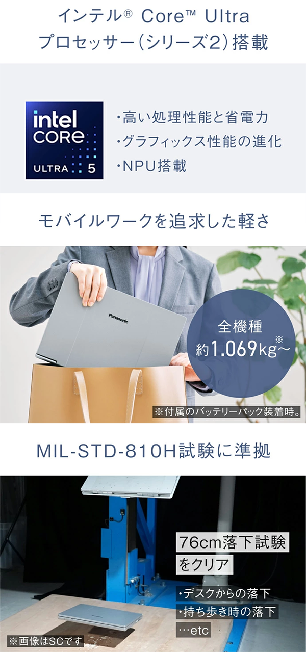 - インテル最新の Core Ultra 5 225U プロセッサー を搭載し、AI処理能力(NPU)を強化しながらも、レッツノート伝統の「頑丈・軽量・長時間駆動」を追求したモデルです。