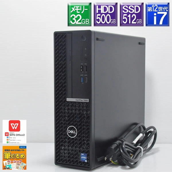 Toggle【商品の説明】中古 デスクトップパソコン PC デル Dell Optiplex 7000 SFF Windows11 CPU Intel 12世代 Core-i7 12700 メモリ 32GB SSD 512GB HDD 500G 有線LAN モニター なし WPS Office