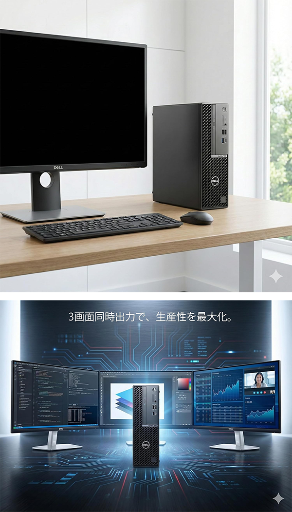 ■注目のおすすめの一台! 【整備済み品】DELL OptiPlex 7000 SFF 12世代 i7 メモリ 16GB SSD 1TB HDD 2TB Windows11 Pro MS Office2021 3画面出力