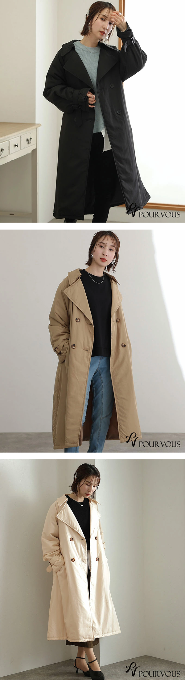 ▶ 楽天市場のサイト: レディース トレンチ コート ロング丈 中わた PourVous