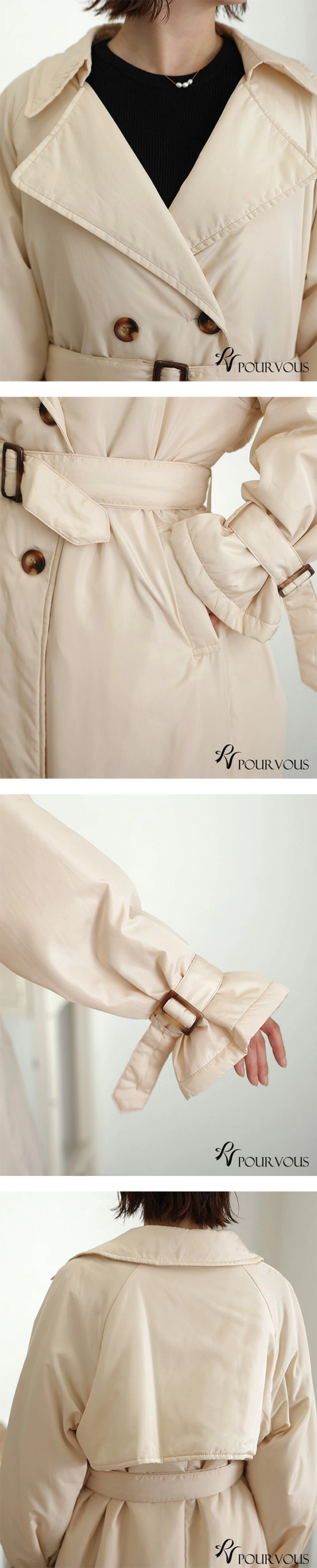 Toggle【商品の説明】レディース トレンチ コート ロング丈 中わた PourVous