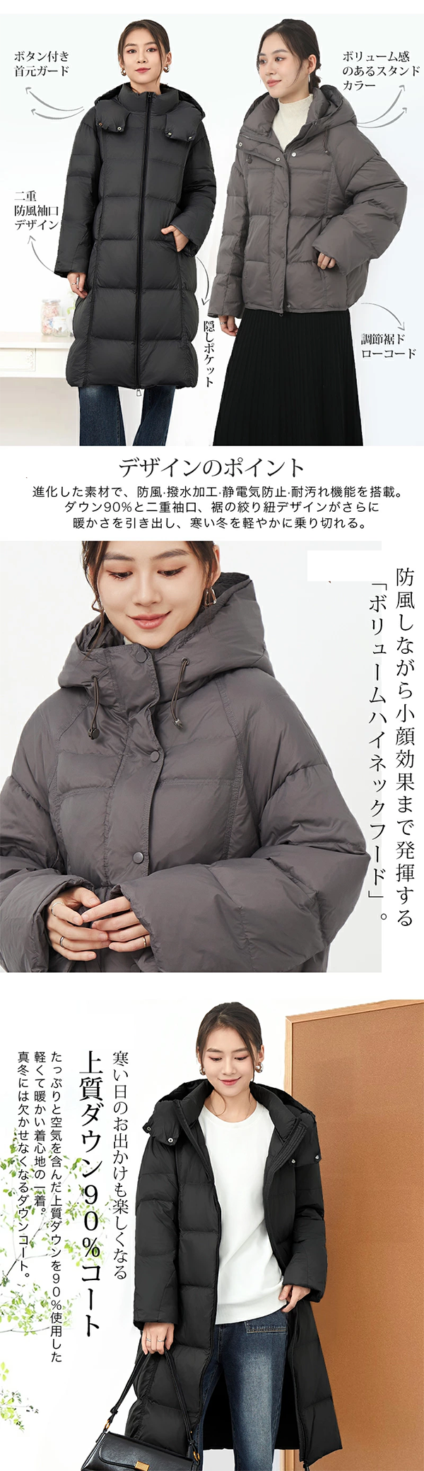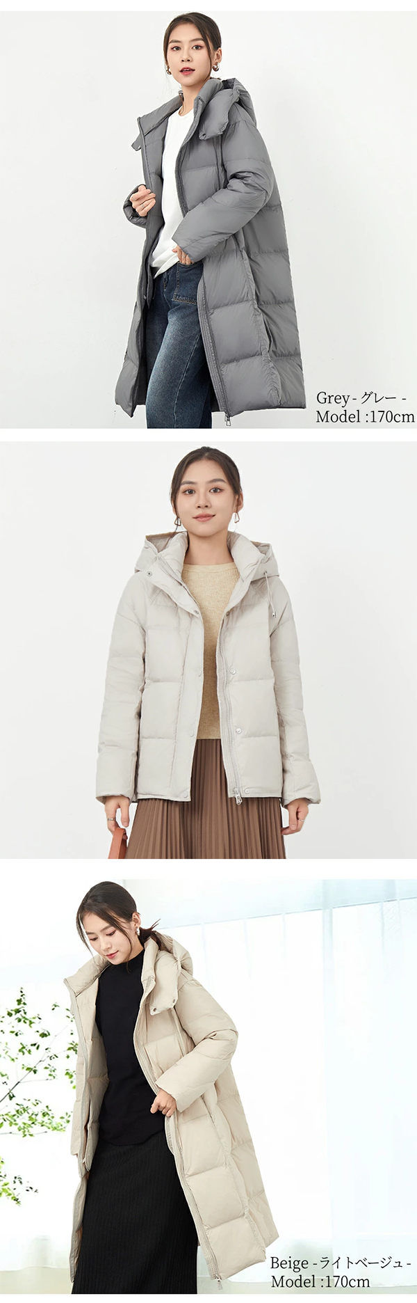 ▶ 長め丈・短め丈選べる ダウンコート