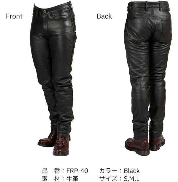 ▶ スリムなストレートシルエットながら、膝と腰にプロテクターを標準装備した本革パンツ
