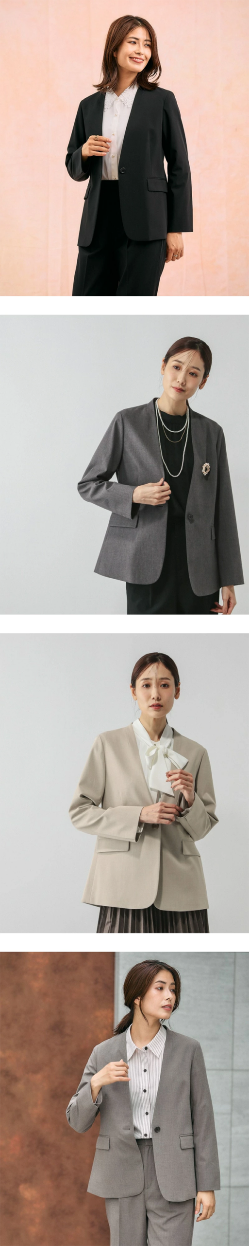 ▶ 着るだけで美シルエット完成するノーカラー シングル ジャケット