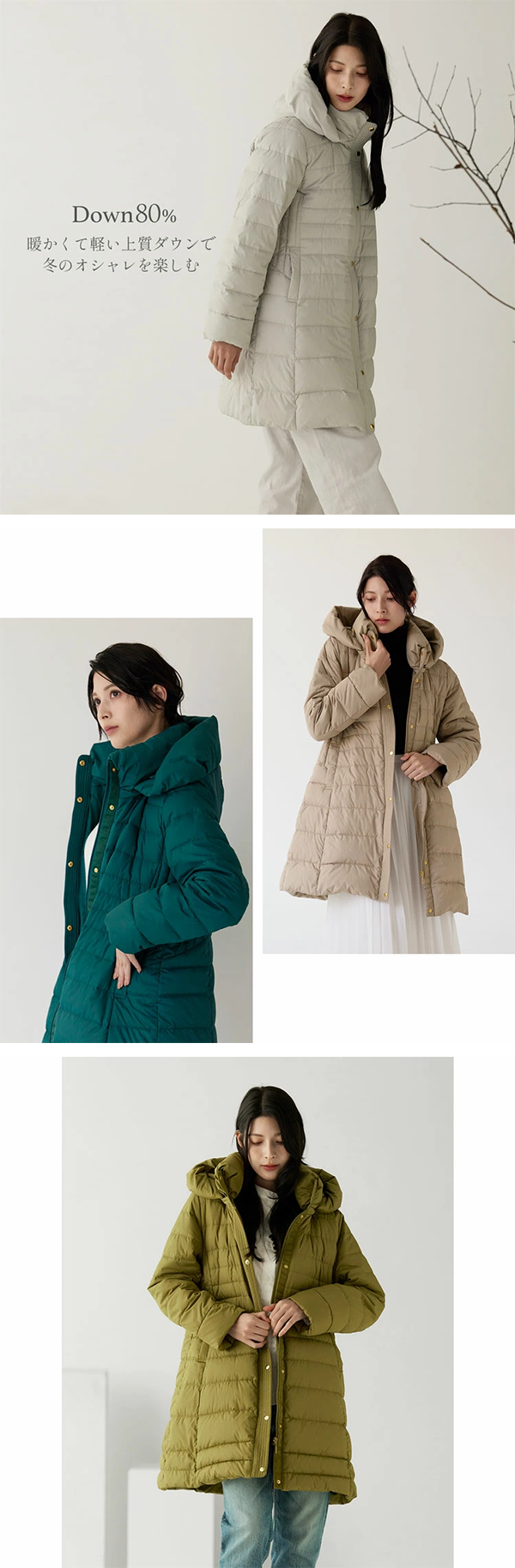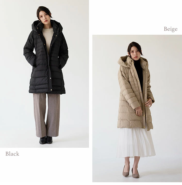 - 着ぶくれしにくいスッキリとしたシルエットのミディアム丈。