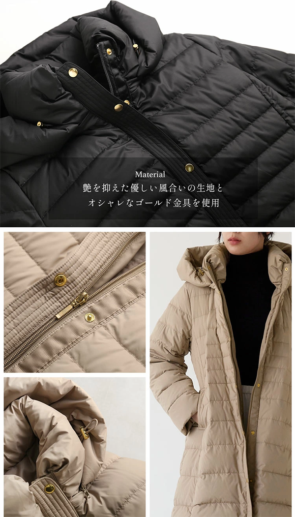 - 軽量でありながら上品さを兼ね備えたライトダウンコートです。