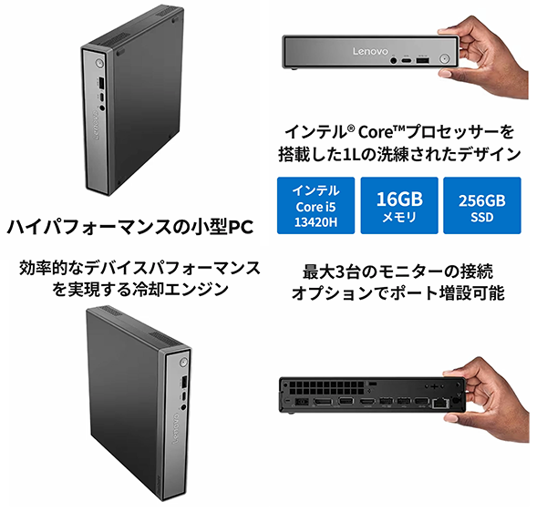 Toggle【商品の説明】新品 デスクトップパソコン PC レノボ Lenovo ThinkCentre neo 50q Tiny Gen5 Windows11 CPU Intel 13世代 Core i5-13420H メモリ 16GB SSD 256GB/512GB 無線LAN Wi-Fi6E モニター なし MS Office H&B 2024