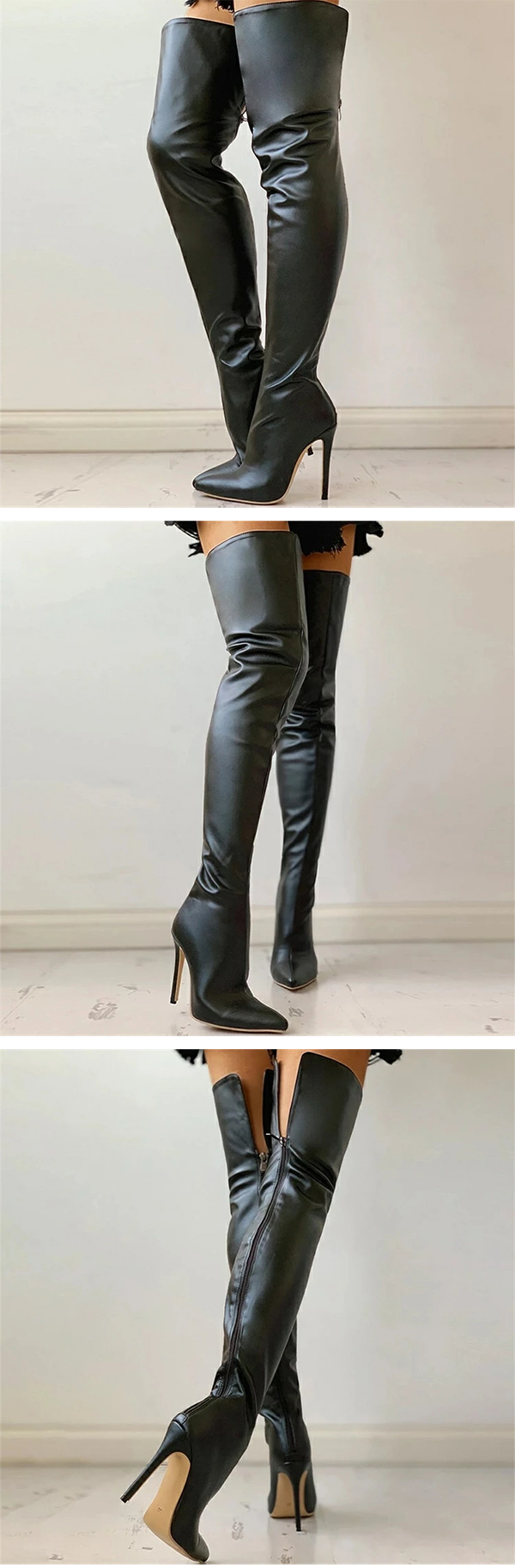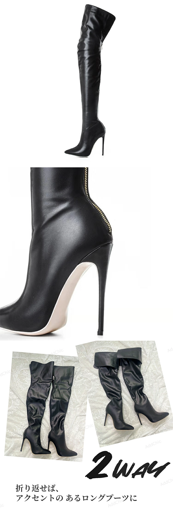 Toggle【商品の説明】レディース ニーハイ ロング ブーツ ポインテッドトゥ バックファスナー ピンヒール11cm AddChic