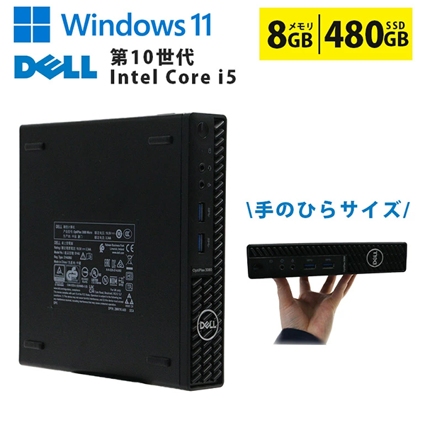 Toggle【商品の説明】中古 ミニデスクトップパソコン PC デル Dell OptiPlex 3080 Micro Windows11 CPU 10世代 Intel Core i5 10500T メモリ 8GB SSD 480GB 有線LAN モニター なし