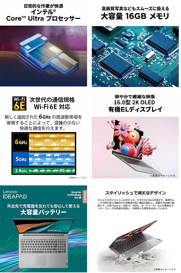 Toggle【商品の説明】新品 ノートパソコン PC レノボ Lenovo ideaPad Slim 5i Gen9 Windows11 16型 CPU Intel Core Ultra5 125H メモリ 16GB SSD 512GB 無線LAN Wi-Fi6E Microsoft Office Home and Business 2021