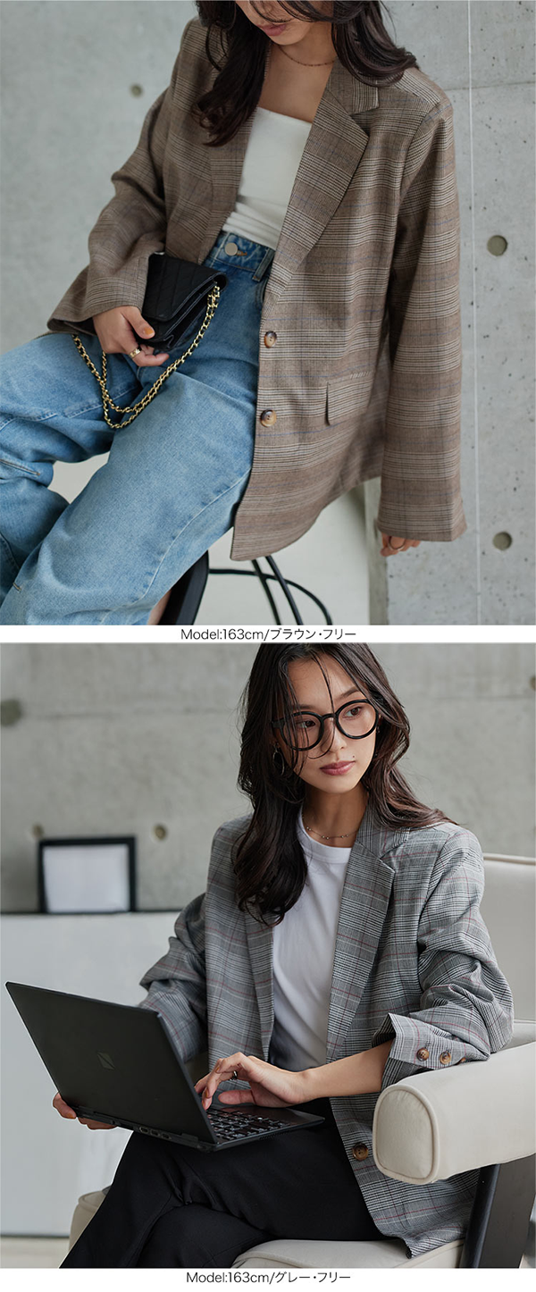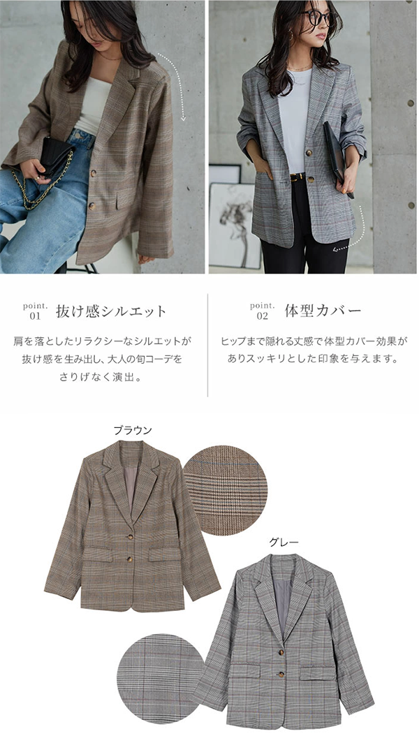 - 秋冬コーデの主役アウターとして、きれいめにも大人カジュアルにも着回せる万能チェックジャケットです。