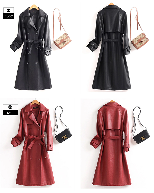 ◎レディース ラムレザー トレンチ コート 本革 ロング丈 ベルト