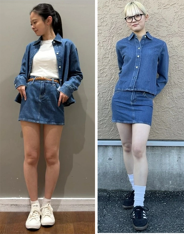 - 太もも半ばくらいまでの超ミニ丈で、少し腰で履くスタイルに近い丈感です。