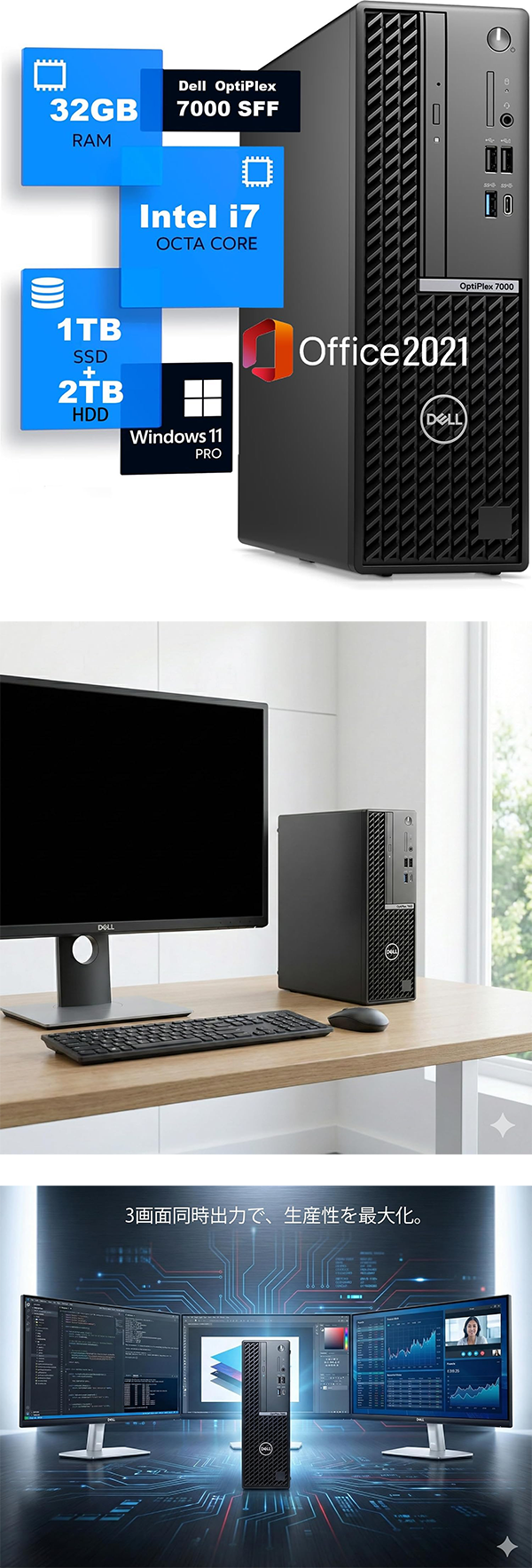 ■注目のおすすめの一台! 【整備済み品】デスクトップPC DELL OptiPlex 7000 SFF 12世代 Core i7-12700 メモリ 32GB SSD 1TB HDD 2TB WIFI・Bluetooth無線 Windows11 Pro MS Office 2021