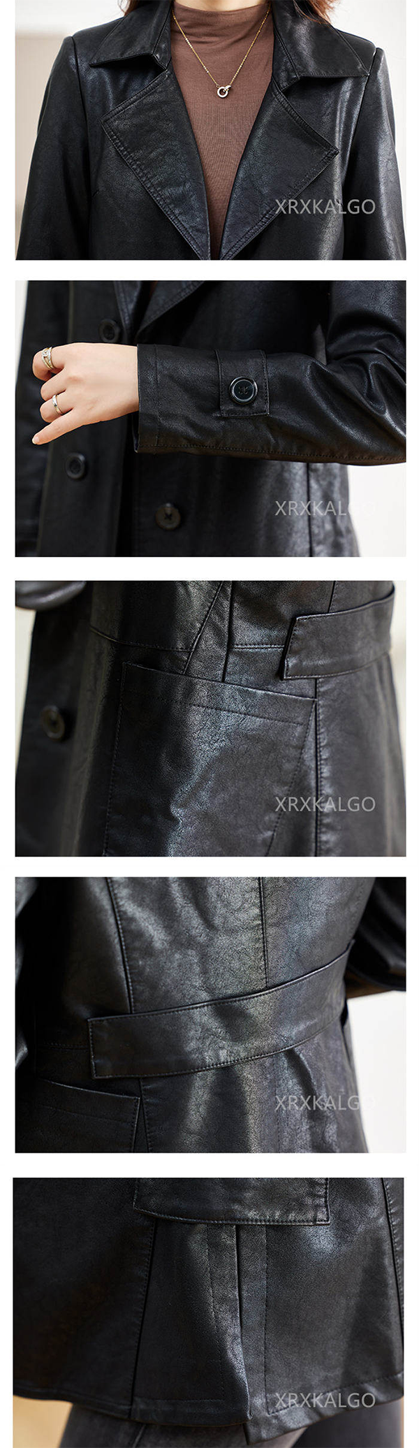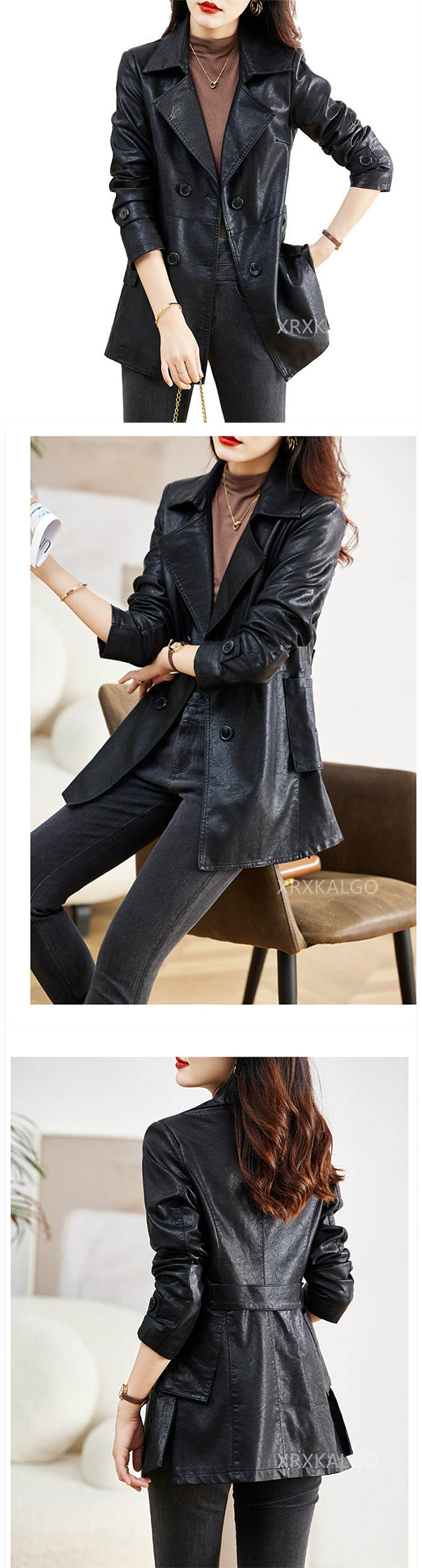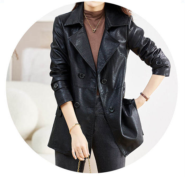 ▶ 上質なラムレザーを使用した、エレガントなダブルボタンのデザインが特徴のロング丈ジャケット