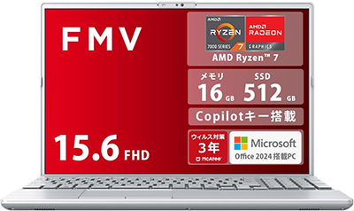 - 富士通のFMV Note A WA1-K3(AMD Ryzen 7 7730U搭載モデル)は、高い処理能力と使いやすさを両立した15.6型ノートパソコンです。