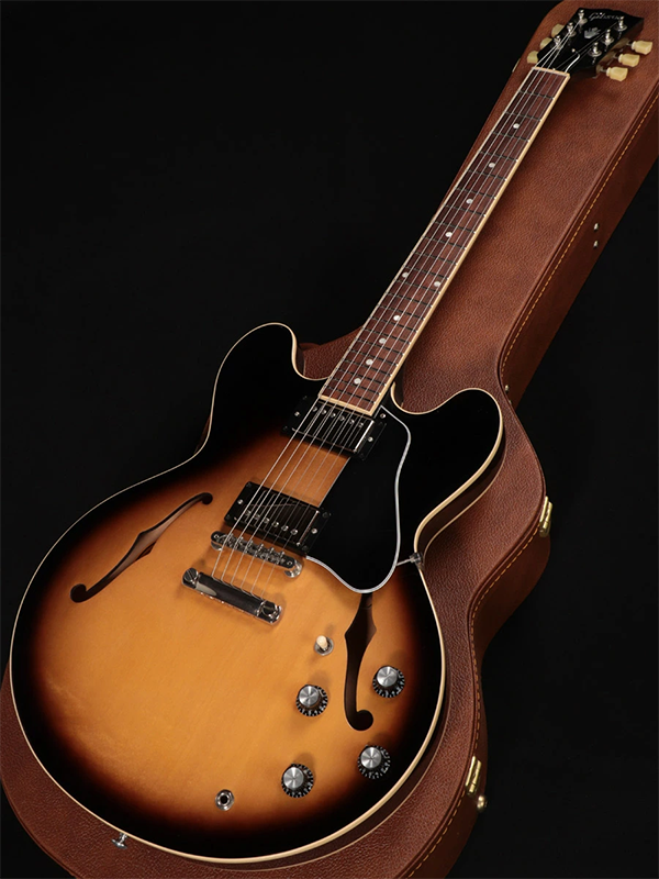 - 2021年製の Gibson ES-335 Vintage Burst は、伝統的な仕様を継承しつつ、現代的なプレイアビリティを兼ね備えたナッシュビル工場製の現行モデルです。