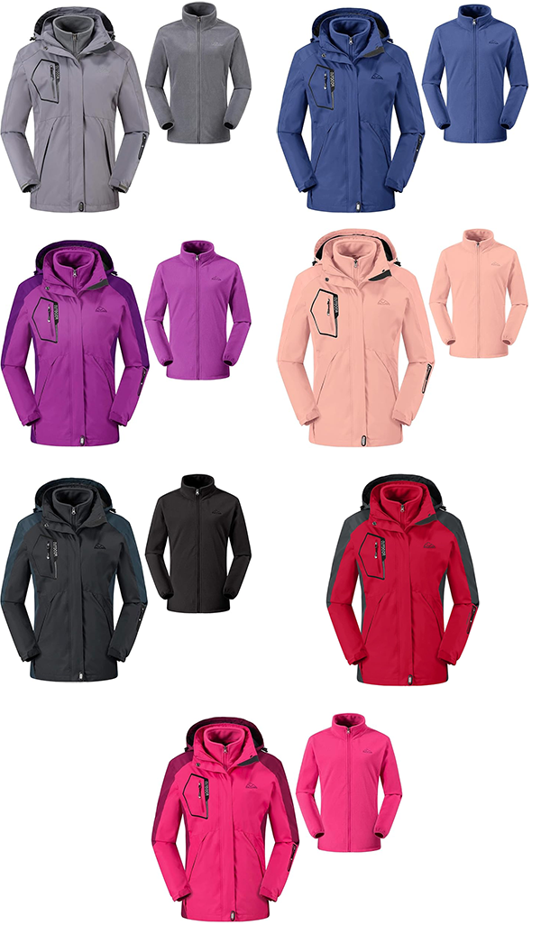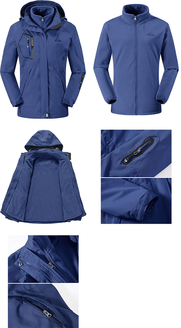 ▶ Amazonのサイト:[TBMPOY] レディース 3in1 ジャケット 3way 防寒 アウター フード付き 取り外し可能 立ち襟 コンバーチブル アウトドアジャケット マウンテンパーカー 裏起毛 防撥水 防風 保温 多機能 登山服 秋冬用