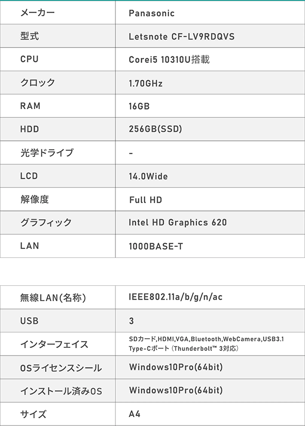 ▶ 楽天市場のサイト: 中古 ノートパソコン PC パナソニック レッツノート LV9 Windows11 14型 CPU 10世代 Core i5-10310U メモリ 16GB SSD 256GB 無線LAN Wi-Fi6