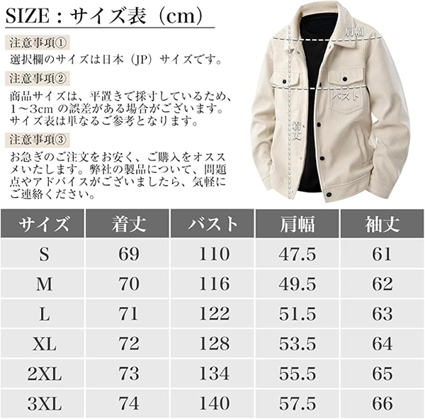 【サイズ】 ・S / M / L / XL / 2XL / 3XL