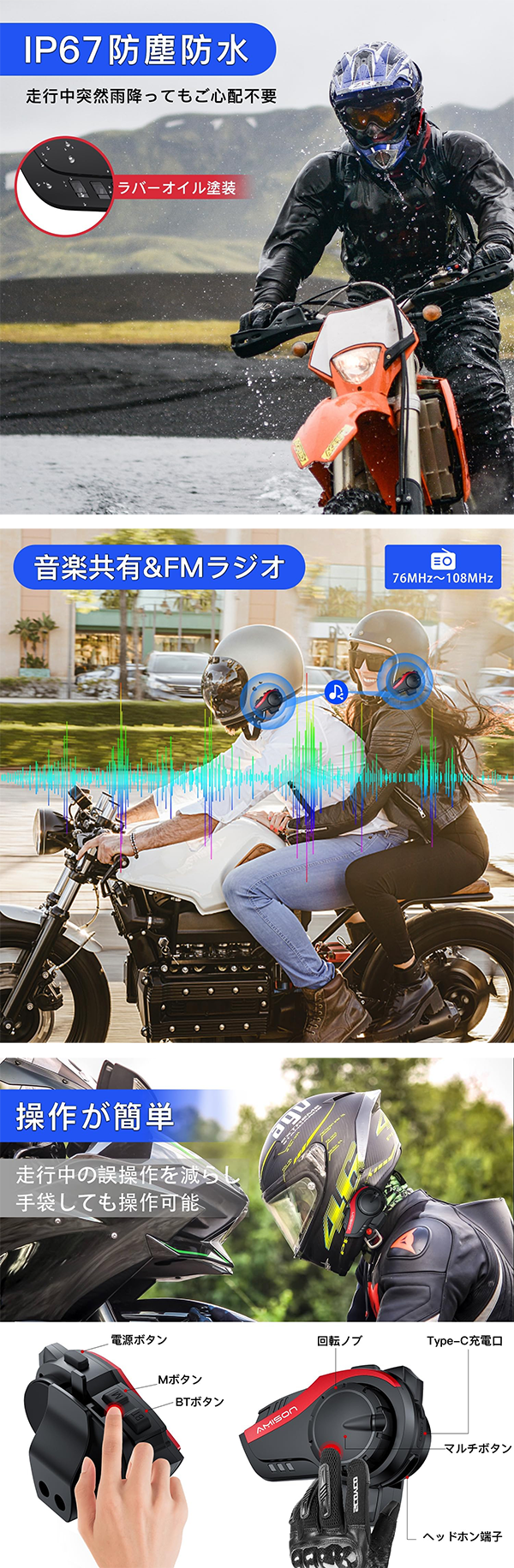 ◎バイクインカム 通信 ヘルメット装着 通話10人 G10 Amison
