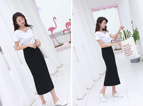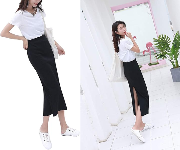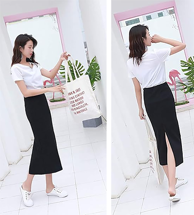- 大胆なスリットのチラ見せで、着痩せ、脚長効果も期待でき、無地でシンプルで定番カラーでも大人っぽくなり、歩きやすくて普段着にも最適。