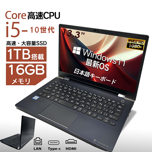 ■注目のおすすめの一台! 中古 ノートパソコン PC Dynabook G83 Windows11 13.3型 CPU 10世代 Core i5-10210U メモリ 16GB SSD 512GB/1TB 無線LAN Wi-Fi6 Wps Office