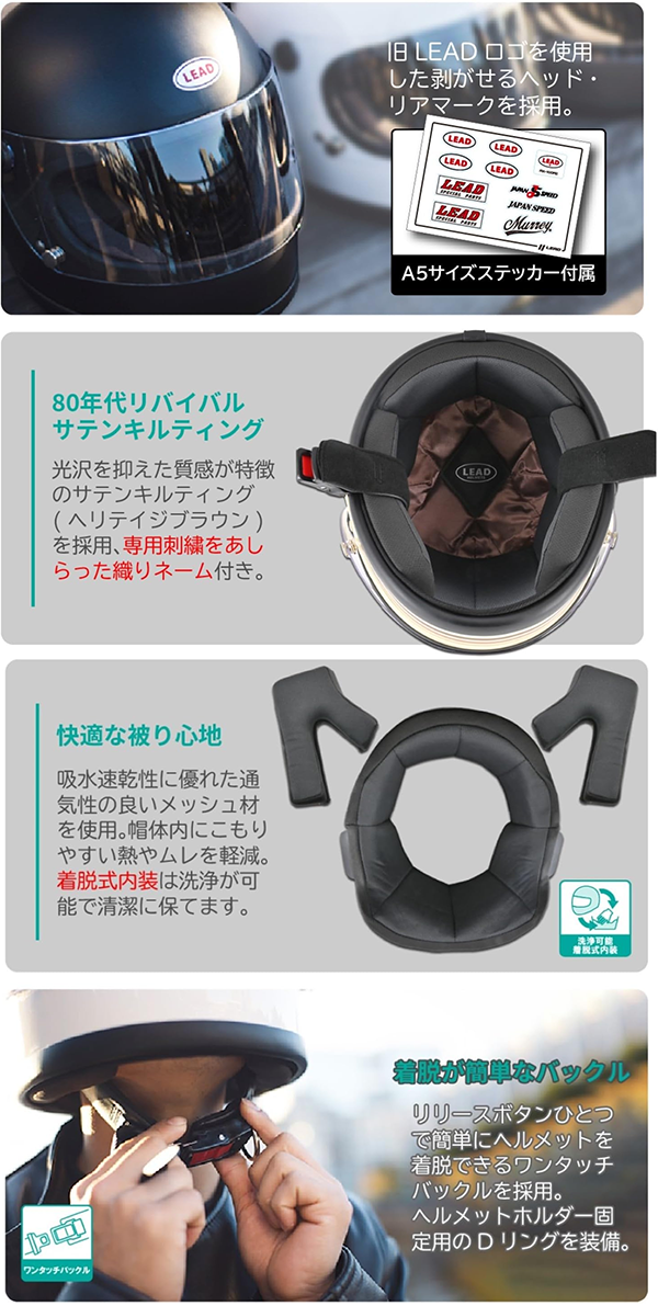 ▶ 80年代のビンテージ感を再現しつつ、視界の広いワイドなフェイスウィンドウを採用